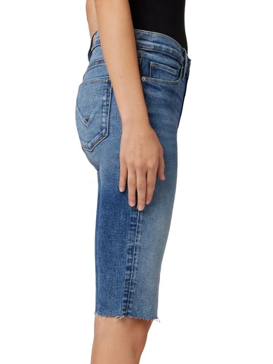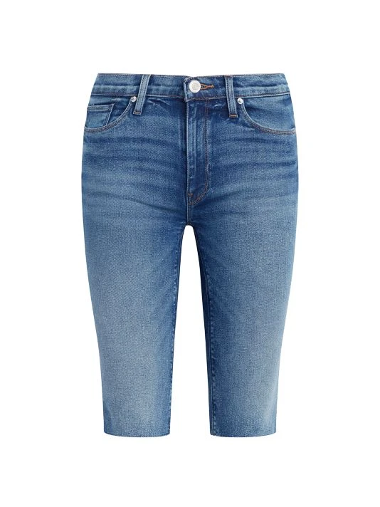 Composed of blue cotton denim, Hudson’s mid-rise shorts are styled with raw hems.
