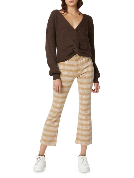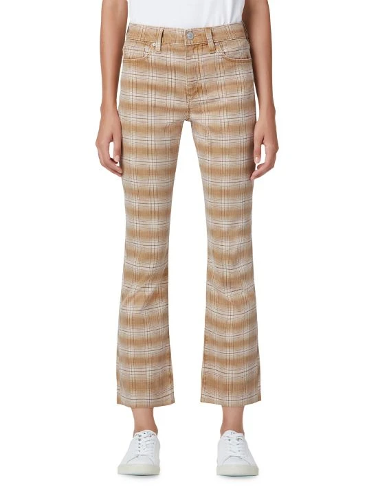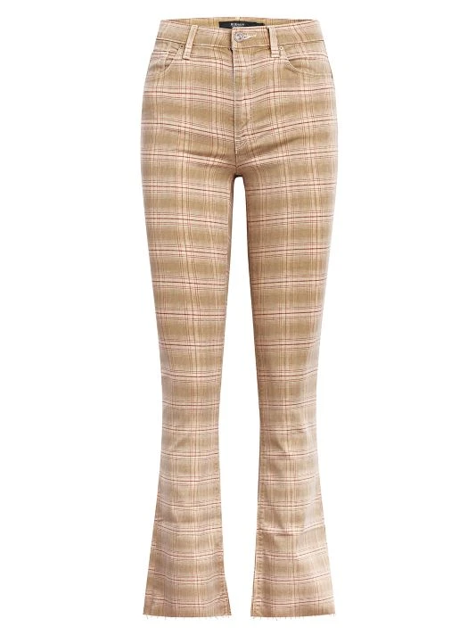 These bootcut jeans are made of stretch-denim decorated with a plaid pattern.