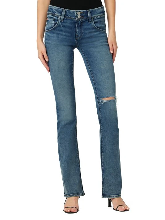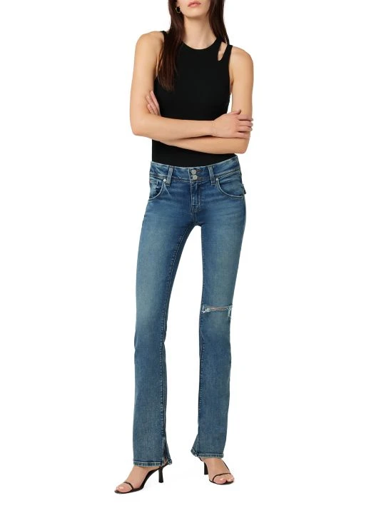 The Beth jeans by Hudson Jeans are cut from premium stretch denim. Featuring an intentionally distressed design, this fitted style is detailed with slit boot-cut legs and a mid-rise waist.