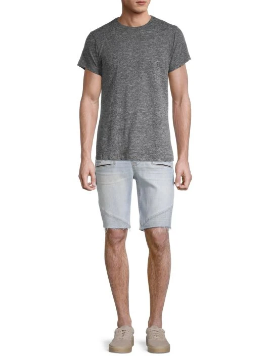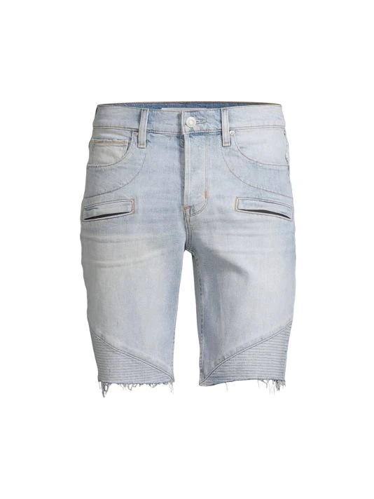 With a raw hem, these denim shorts feature seven pockets and a classic zip fly with button closure