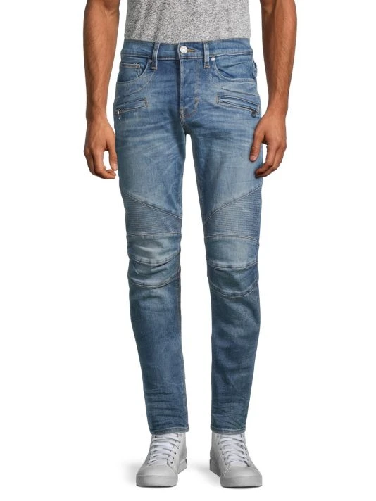 With a moto-inspired design, these Blinder Biker V2 Skinny jeans from Hudson Jeans have are cut in a skinny silhouette with a seven-pocket style and have ribbed details on the back pockets.