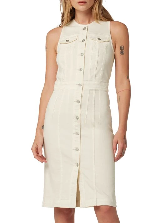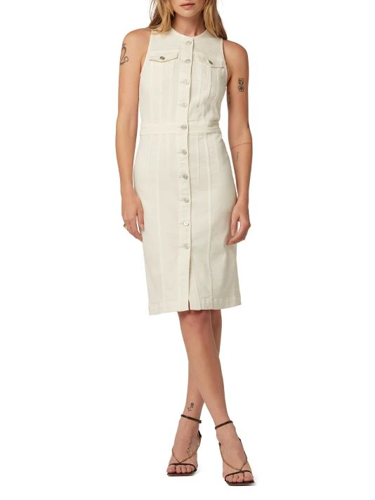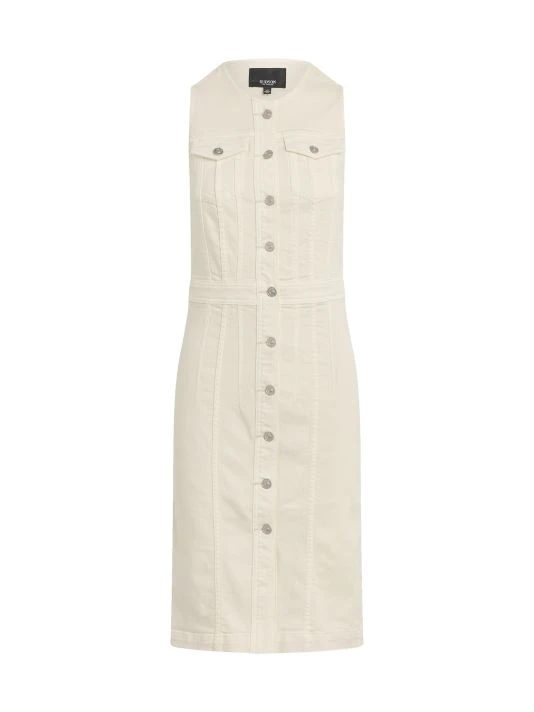 Cut from stretch denim, Hudson Jeans’ Cut In sleeveless midi-dress features a round neck, banded waist, and chest flap pockets.
