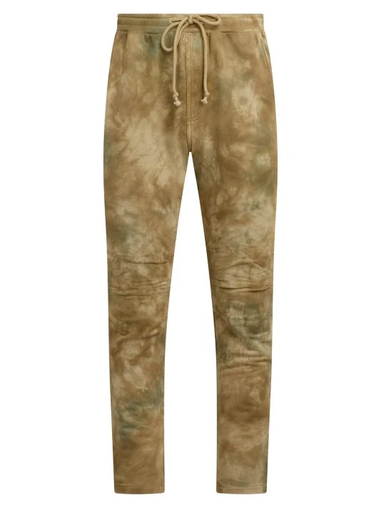 Cut for an easy fit from ultra-comfortable French terry, these tie-dye camo sweatpants are finished with a drawstring waistband, two back pockets, and darting at the knees.