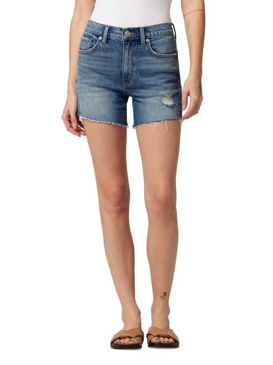 Made for Hudson Jeans, the Devon shorts are crafted of stretch-denim with distressing at the hem.