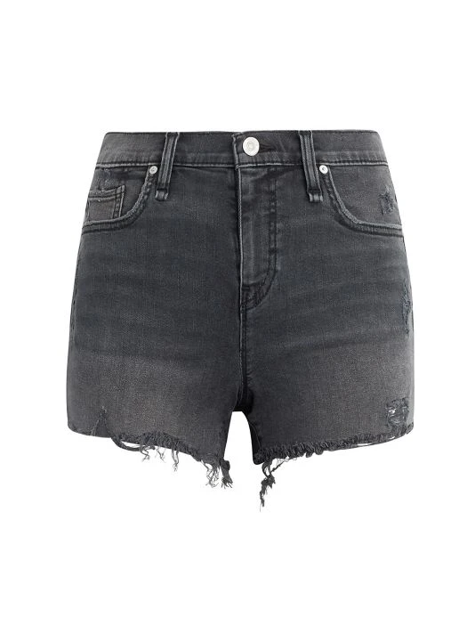Featuring an intentionally distressed design, Hudson Jeans’ Gemma stretch denim shorts are detailed with a mid-rise waist and frayed hem.