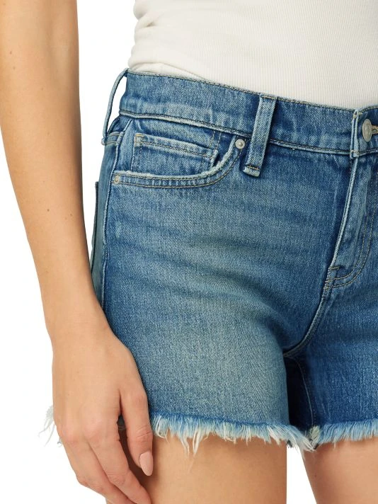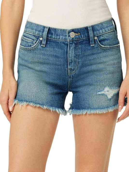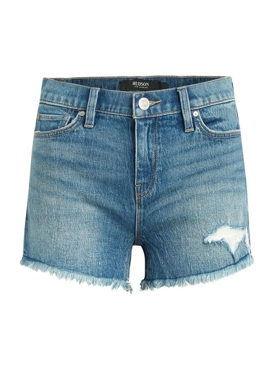 Finished with a frayed hem, the Gemma distressed denim shorts by Hudson Jeans are detailed with a mid-rise and five-pocket style.