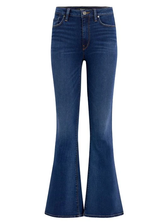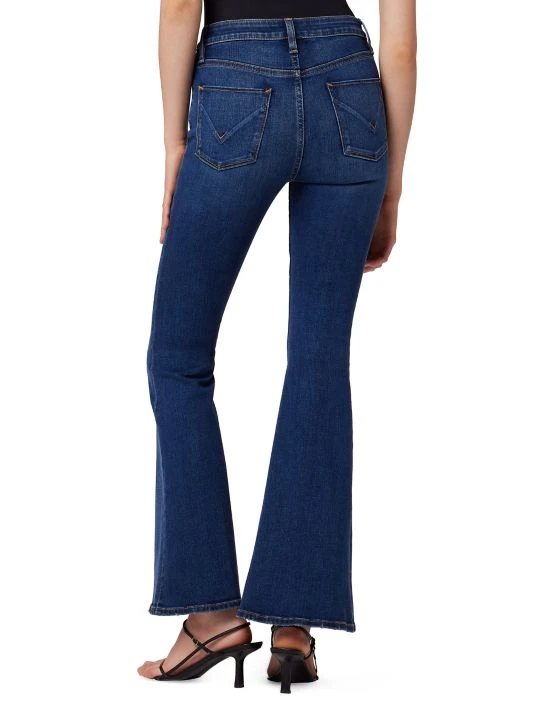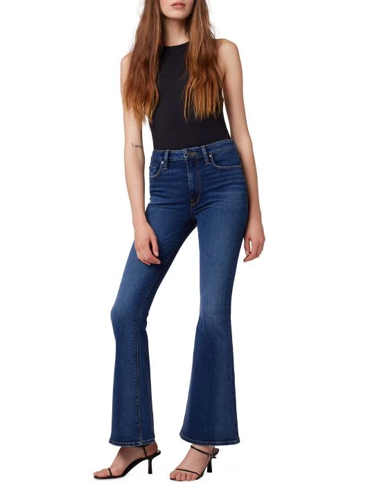 These high-rise slim-leg jeans are cut in a flared-leg silhouette.