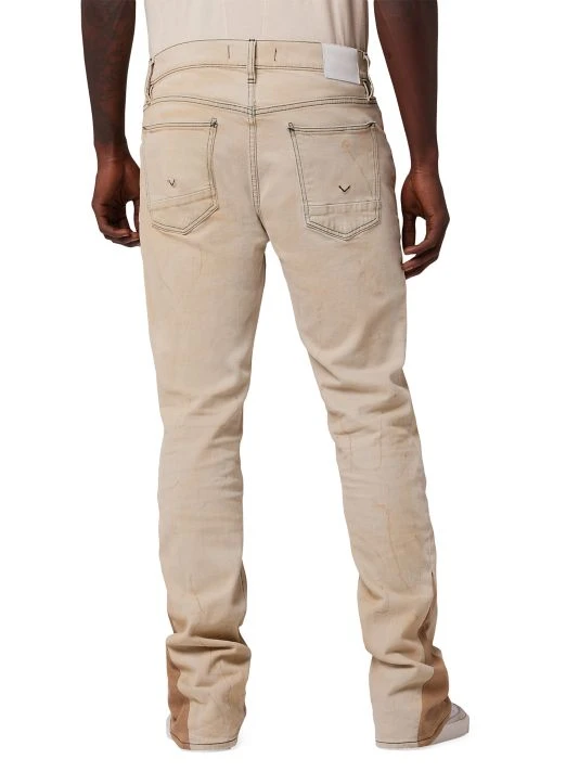 From the Hudson x Brandon Williams Collection. Crafted of stretch denim, these jeans showcase a subtle dye-splatter patina and color-blocked panels to emphasize the lower-leg flare.