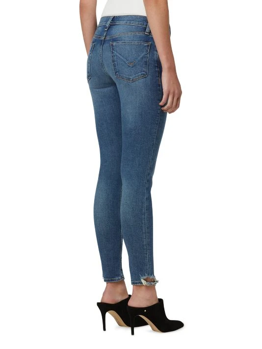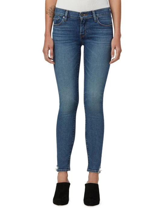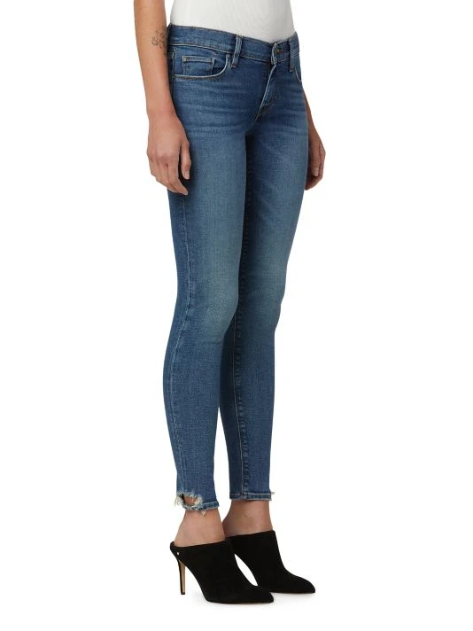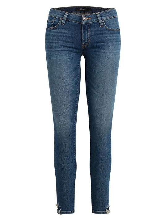 These jeans are made of stretch-denim in a skinny ankle-length fit with distressing at the ankles.