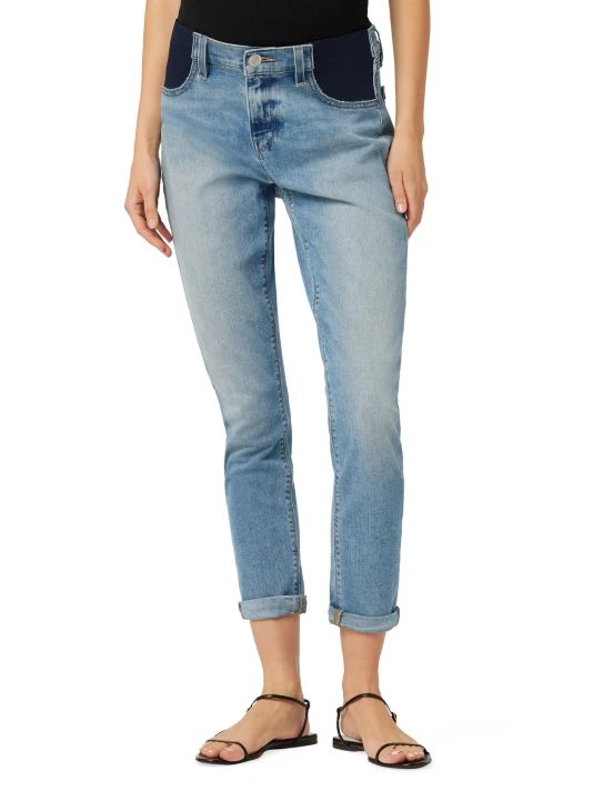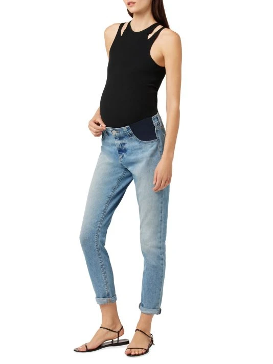 Crafted of denim, the Lana boyfriend maternity jeans feature front stretch panels and rolled hems.