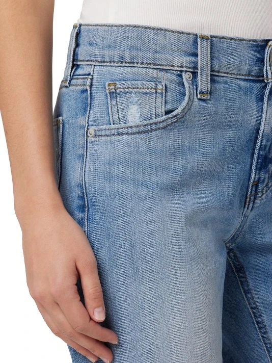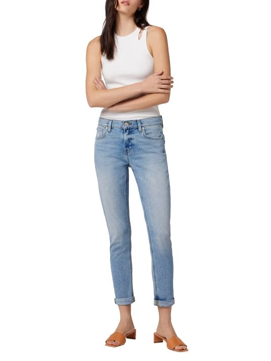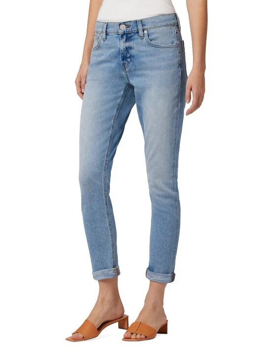 These straight-leg jeans offer brand-embroidery at back patch pockets.