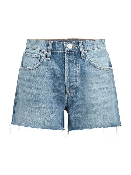 Eclectic with a raw hem, these denim shorts exude understated edge.