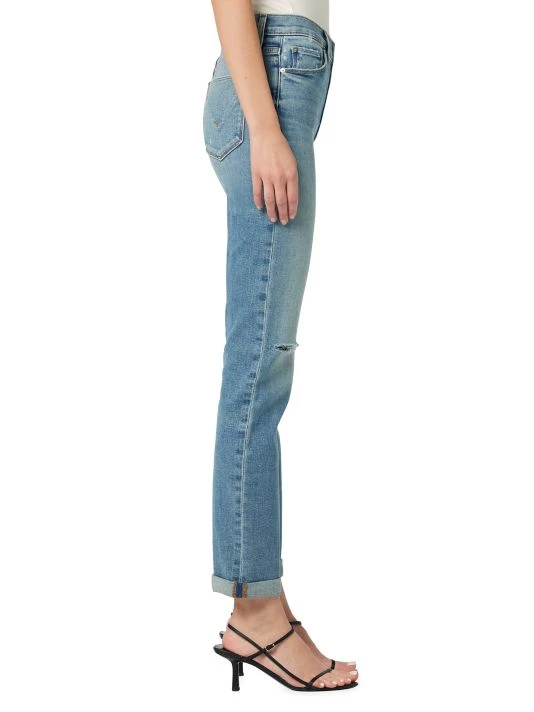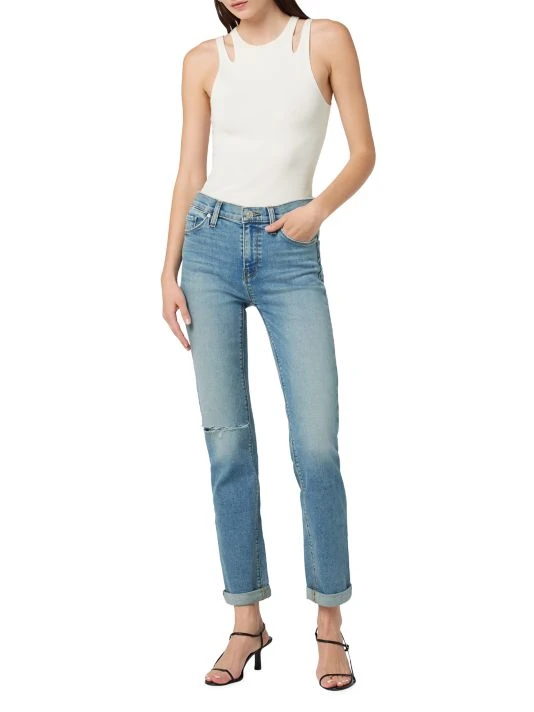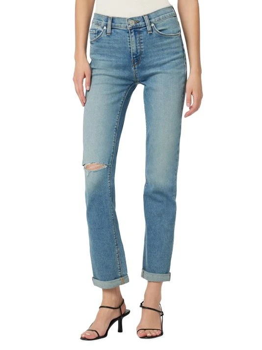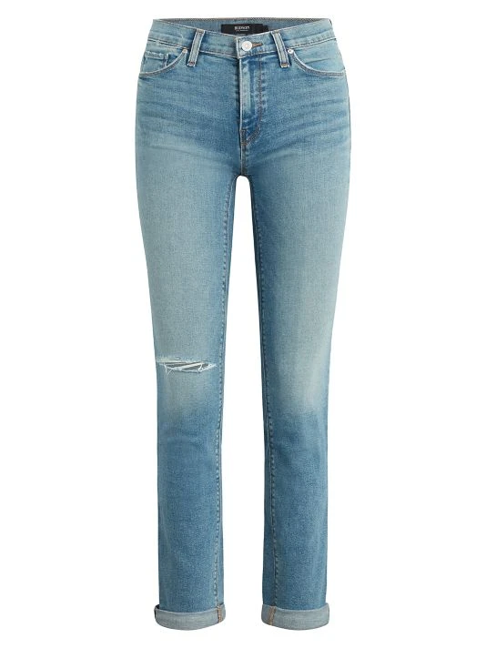 Cut from premium stretch denim, the Nico ankle jeans by Hudson Jeans feature an intentionally distressed straight-leg silhouette and a low-rise waist.