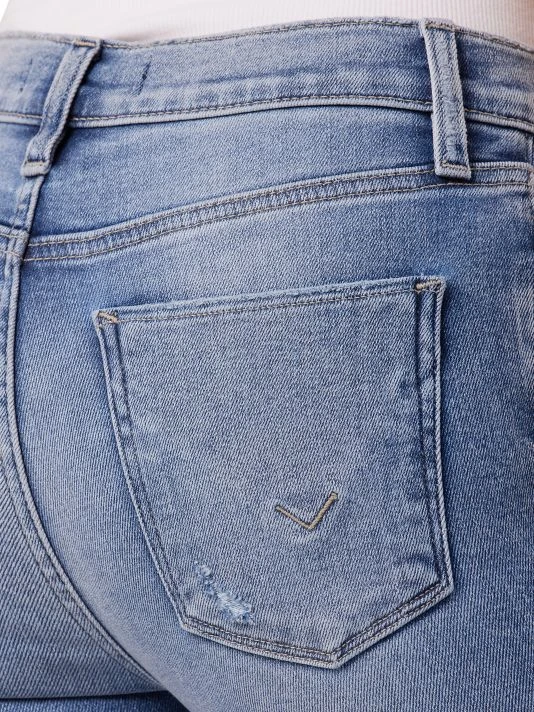 - Skinny mid-rise silhouette