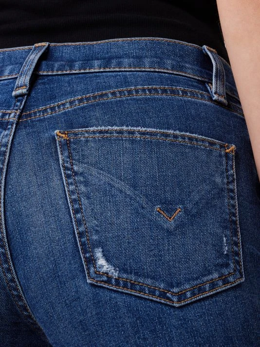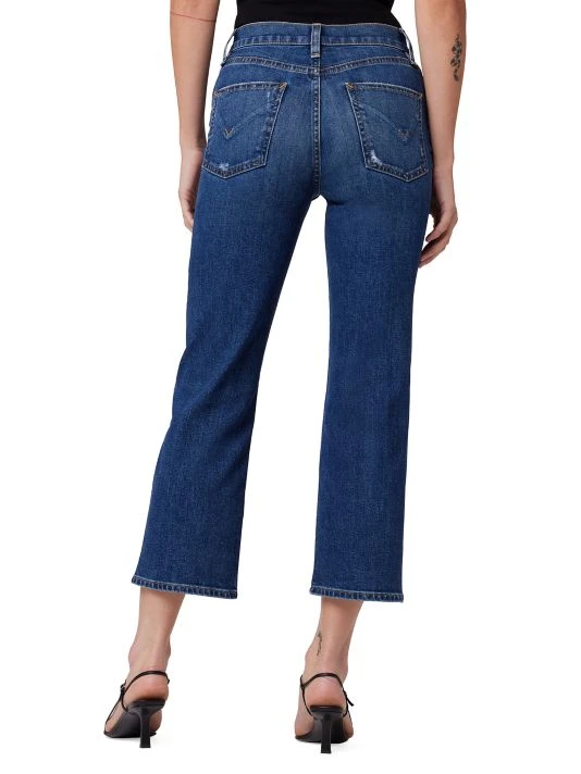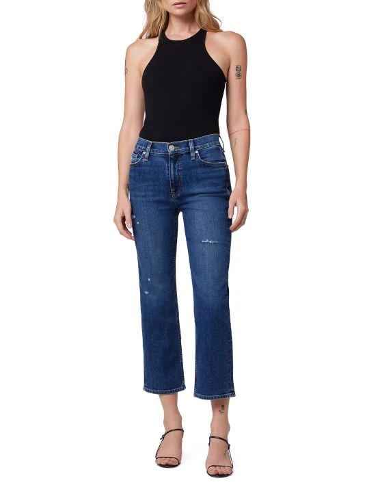 Cut in an ankle-crop silhouette, these flared jeans are complete with subtle distressing and brand-embroidery at back patch pockets.