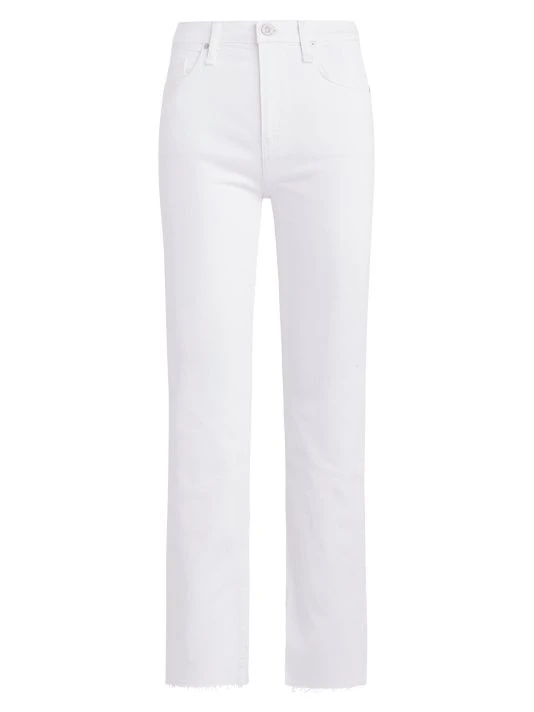 Cut in an ankle-crop silhouette, these high-rise slim-leg jeans boast a raw trim.