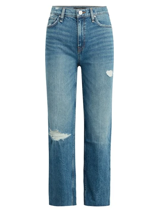 The Remi jeans from Hudson Jeans feature a high-rise, straight-leg silhouette with light stretch. Distressing at the front legs finishes this cropped style.