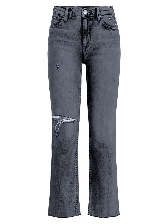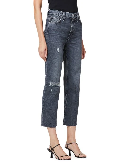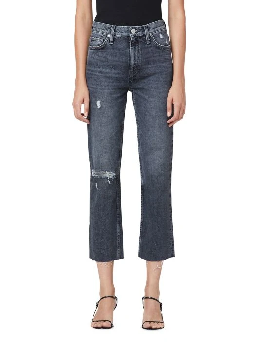Made of stretch-denim, these jeans are detailed with a ripped knee and raw hems.