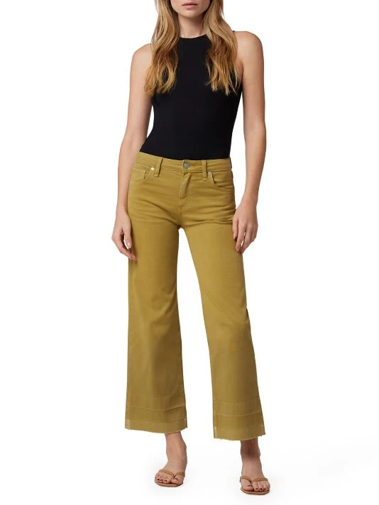 Designed with a mid-rise, wide-leg silhouette, these stretch jeans feature an unfinished hem.
