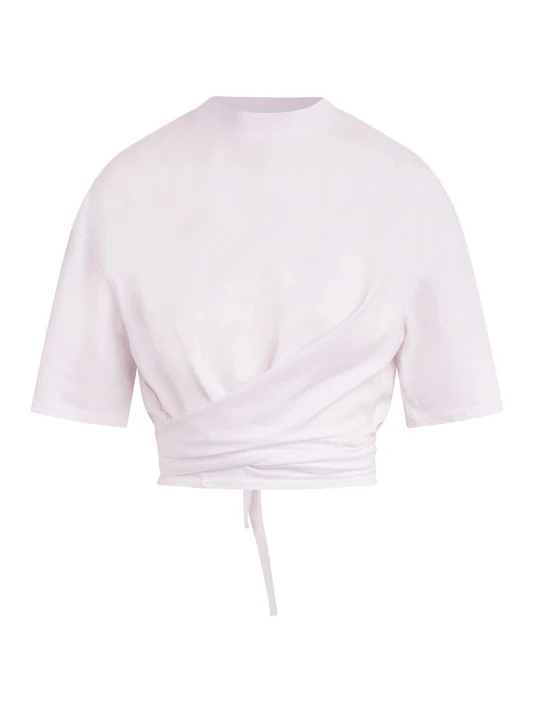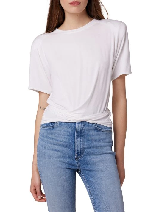 This cotton T-shirt is enhanced by tonal shoulder pads and a twisted self-tie wrap hem.