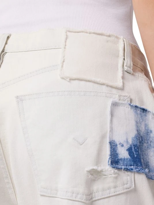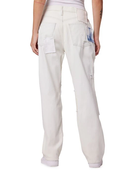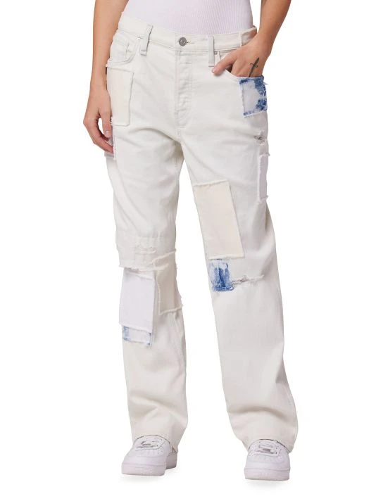 Patchwork detailing defines these straight-leg jeans, designed with an easy fit and stretch denim for comfort.