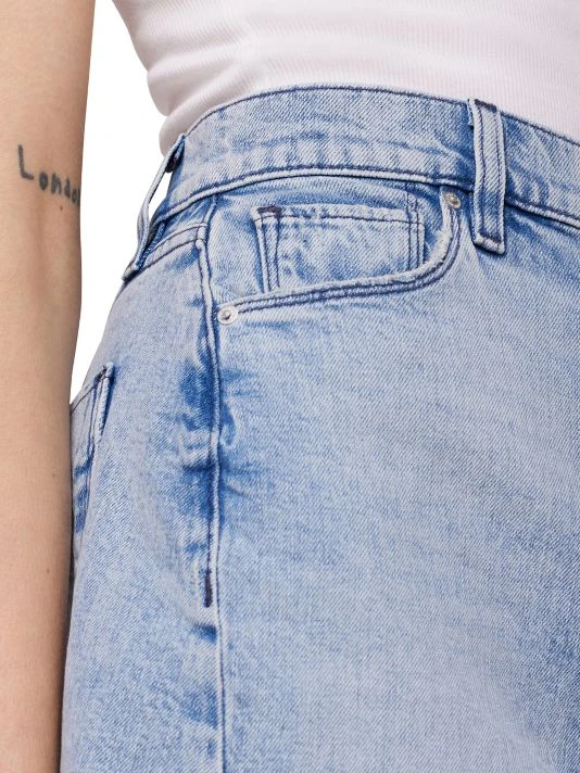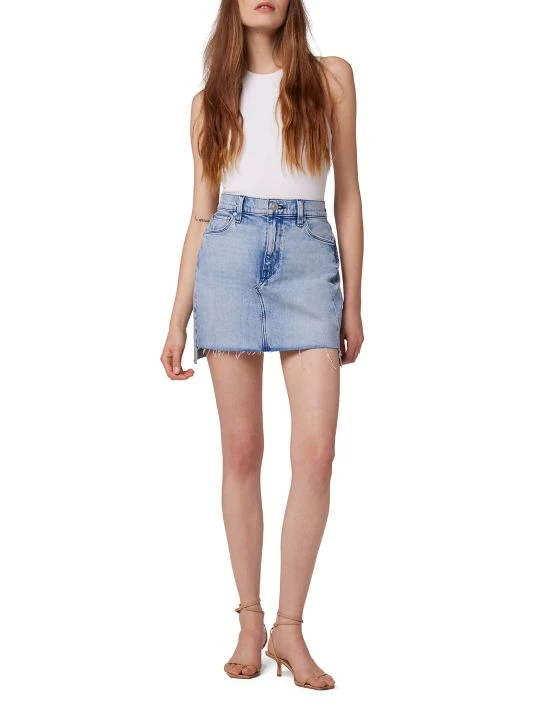 Crafted of stretch denim, Hudson Jeans’ Viper five-pocket-style miniskirt features an uneven raw-edge hem and a light wash.
