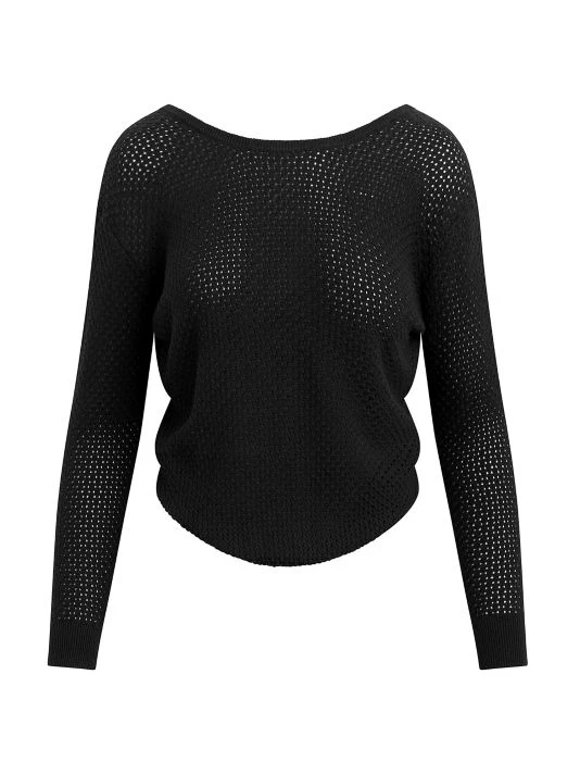 Crafted of cotton, Hudson Jeans’ open-knit sweater features a round neck, long sleeves, and an eye-catching twist-accented back.