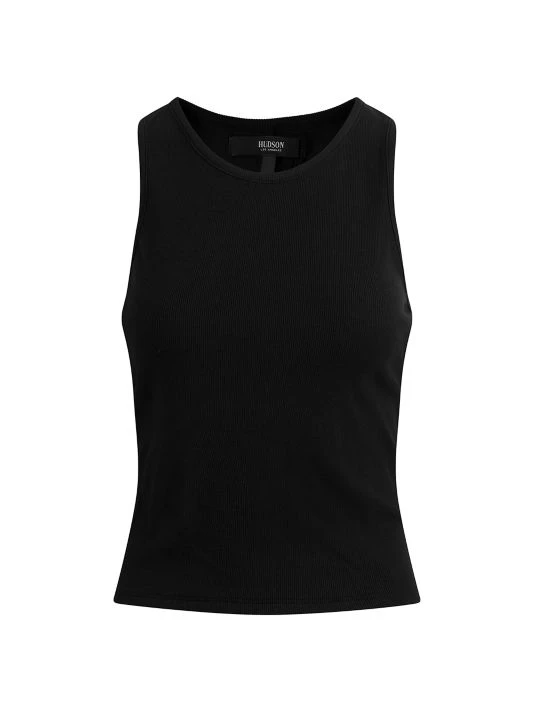 Hudson Jeans’ rib-knit tank top is detailed with a crewneck and twist-accented back.