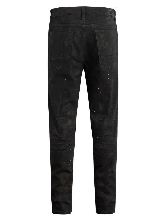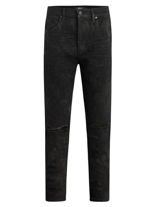 Heavy distressing lends edgy appeal to Hudson’s Zack jeans, designed with a super-skinny fit.